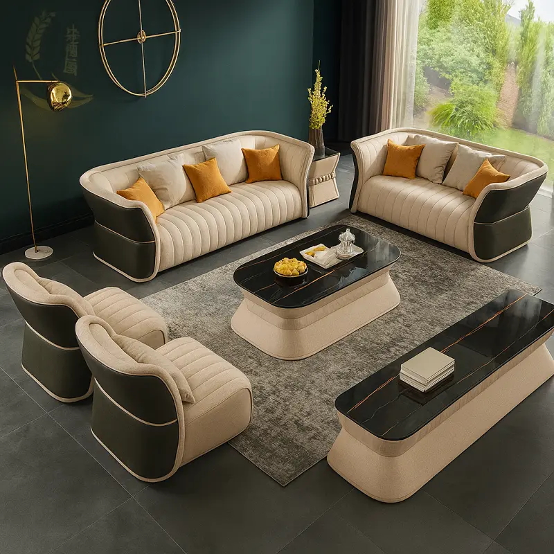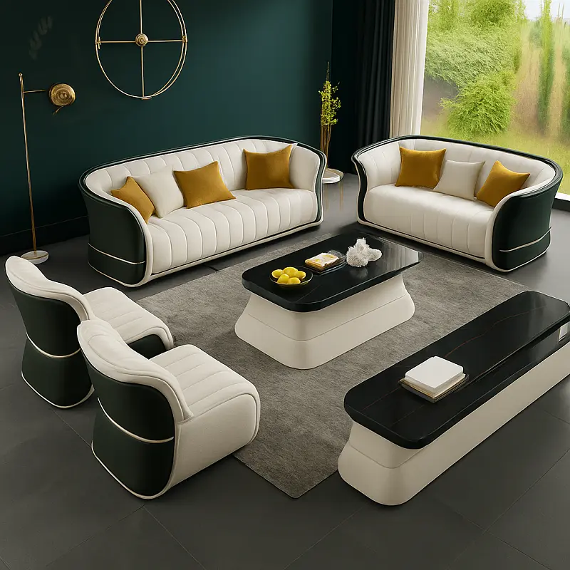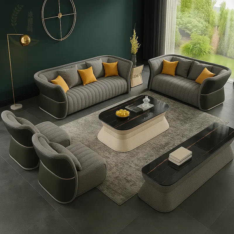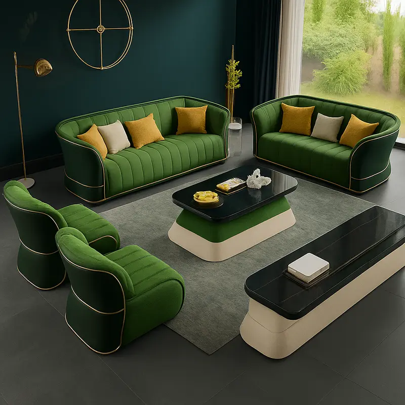 | طقم كنب فاخر 3+2+1 – تنجيد ناعم عالي الجودة – قاعدة خشبية أنيقة – ألوان عصرية متعددة طقم كنب فاخر 3+2+1 – تنجيد ناع...