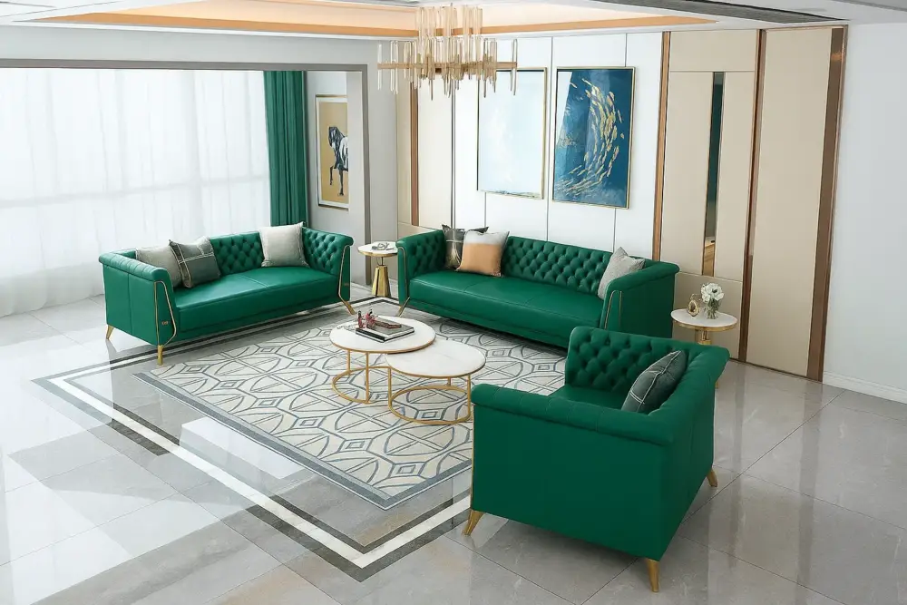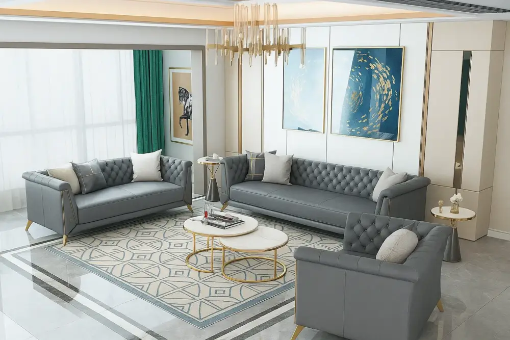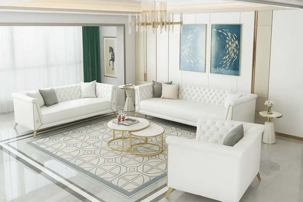 تعتبر قطع الأثاث الرئيسية مثل الكنب من أهم عناصر تحديد أسلوب وجمالية المنزل، وفي “أركان القصر”، نفخر بتقديم طقم الكنب المودرن ذو الثلاث قطع، الذي يمزج بين التصميم العصري والراحة الفائقة، ليضيف لمسة من الأناقة والفخامة إلى أي مساحة يتم وضعه فيها.