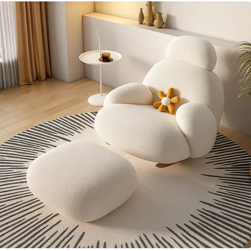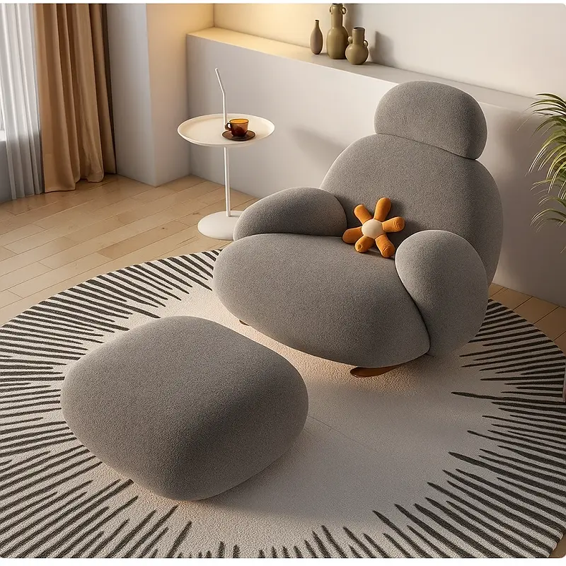 أضف لمسة رائعة إلى غرفة المعيشة الخاصة بك مع كرسي الاسترخاء ذو التصميم العصري والمسند الراحة للقدم.