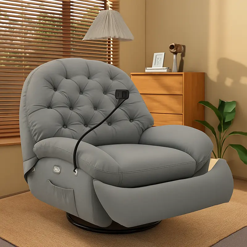 كرسي استرخاء ليزي بوي فخم – آلية إمالة يدوية – تنجيد ناعم ومريح – قاعدة خشبية – لون رمادي فخم كرسي استرخاء ليزي بوي فخم – آل...