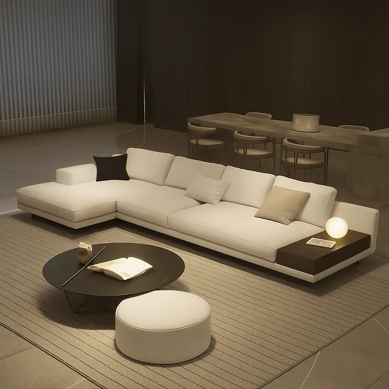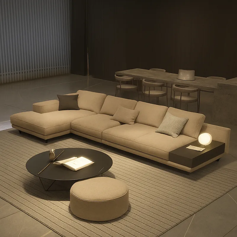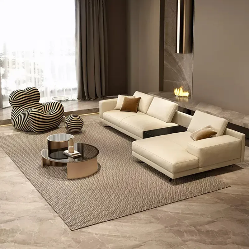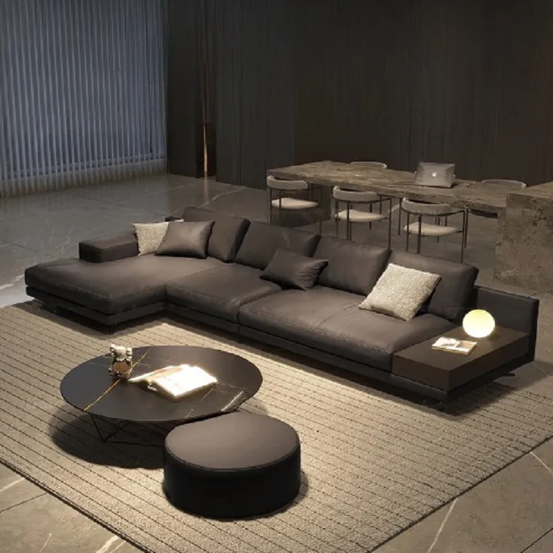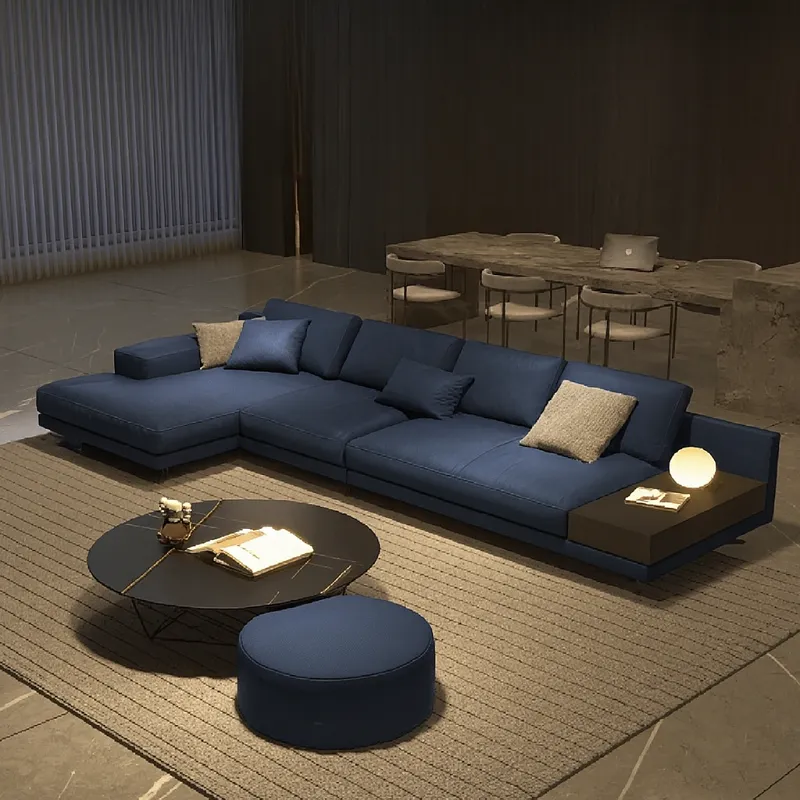الكنب زاوية مصنوع من خشب هندسي وخشب زان روماني عالي الجودة، مع تعبئة من إسفنج عالي الجودة وجلد ممتاز.