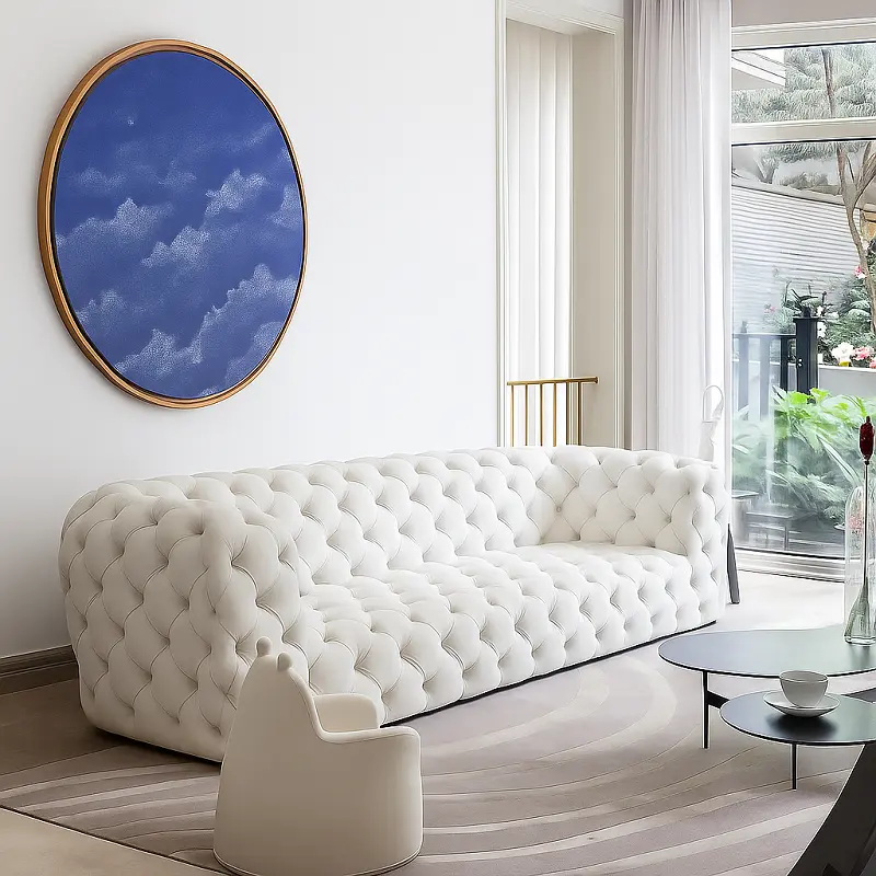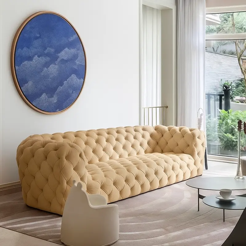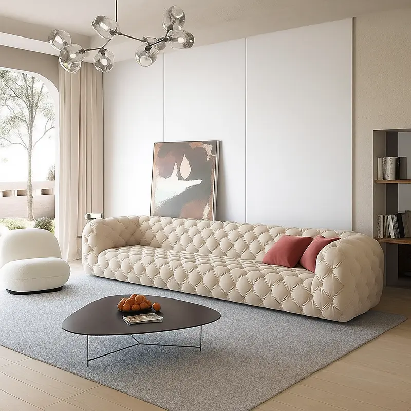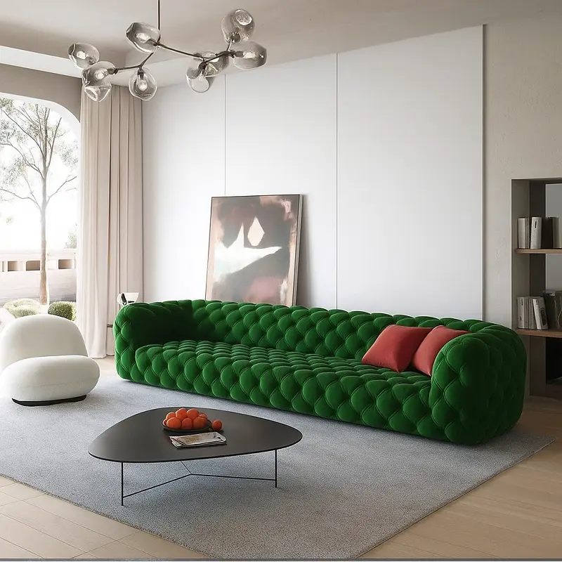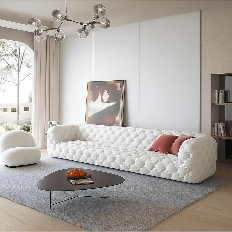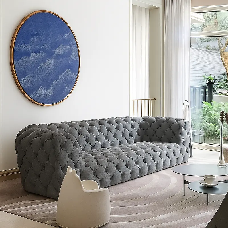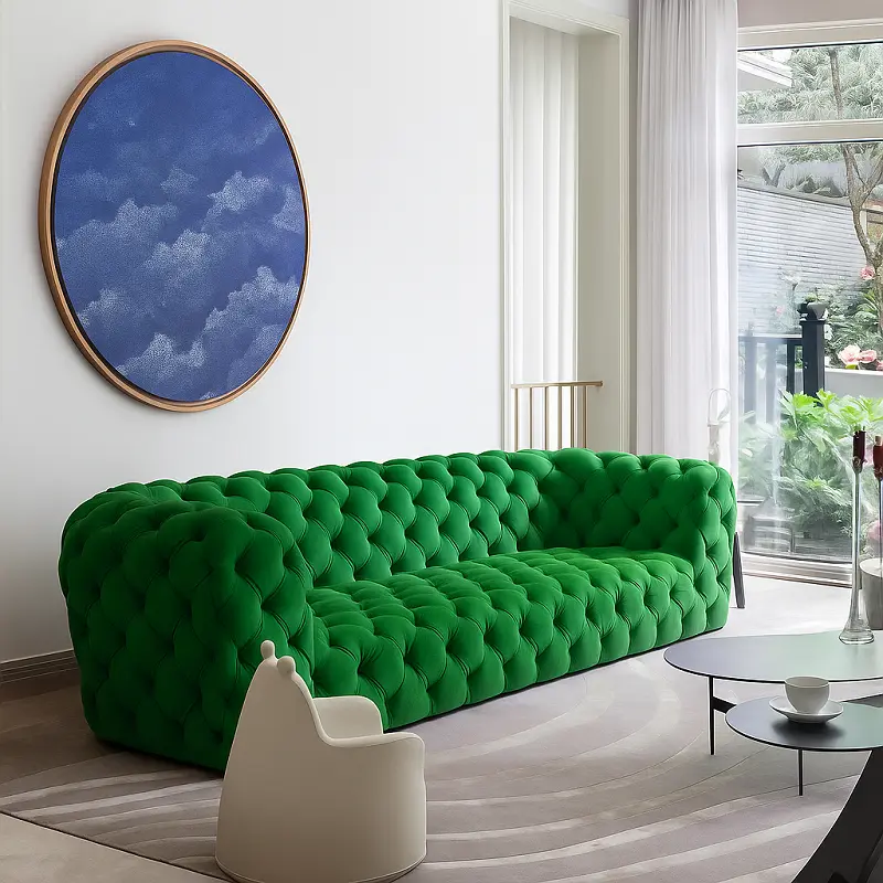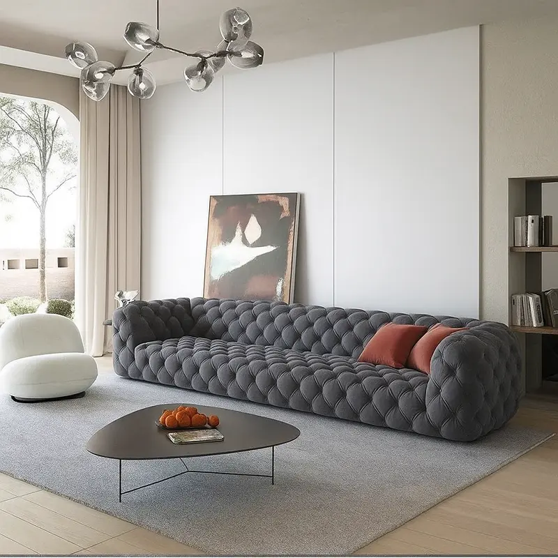 إذا كنت تبحث عن تصميم يجمع بين العصرية والكلاسيكية، فإن الكنب المودرن بتصميم كابوتوني هو الخيار المثالي. يتميز هذا التصميم بالزخارف العميقة والتفاصيل الدقيقة التي تضفي لمسة من الفخامة على الكنب. تم تصنيع الكنبة باستخدام الخشب الهندسي المتين، الذي يضمن الاستدامة والقوة، مع قماش ناعم ومريح يضفي لمسة من الفخامة، وهو مصمم بعناية لتحقيق أقصى درجات الراحة.