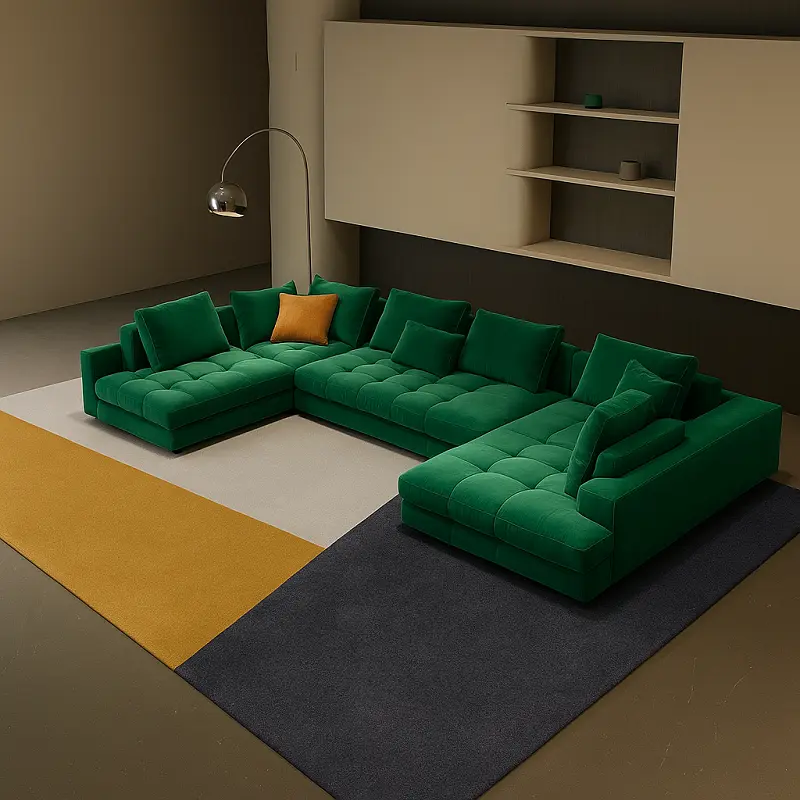 تمتع بأعلى درجات الراحة والفخامة مع كنب زاوية مودرن من الطراز الإيطالي الفخم. تصميم يجمع بين الأناقة والمتانة ليضيف لمسة من الرقي إلى منزلك. هذه الكنبة مصنوعة بمهارة لتناسب مختلف أنماط الديكور، مما يجعلها الخيار الأمثل لكل من يبحث عن الجودة والتصميم العصري.