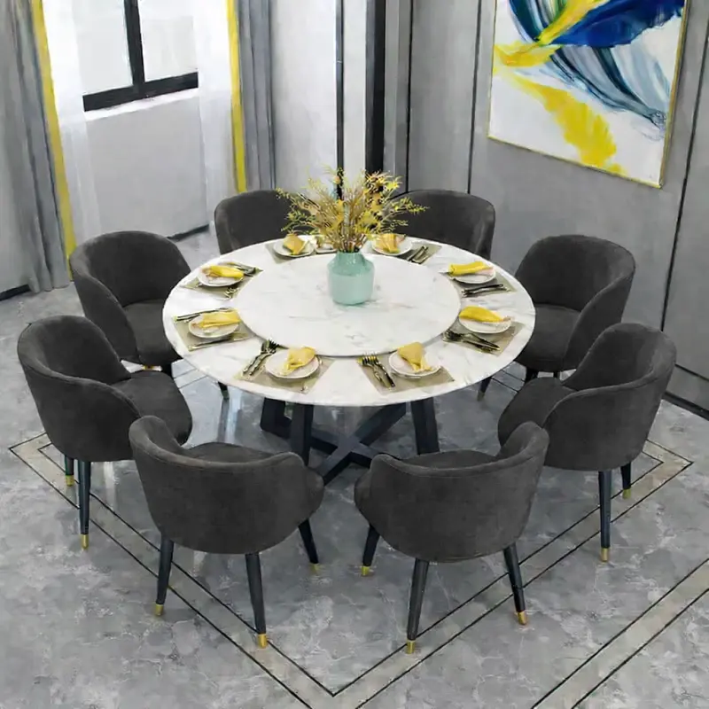 طاولة طعام رخام مع ثمانية مقاعد فاخرة طاولة طعام رخام مع ثمانية مقاع...