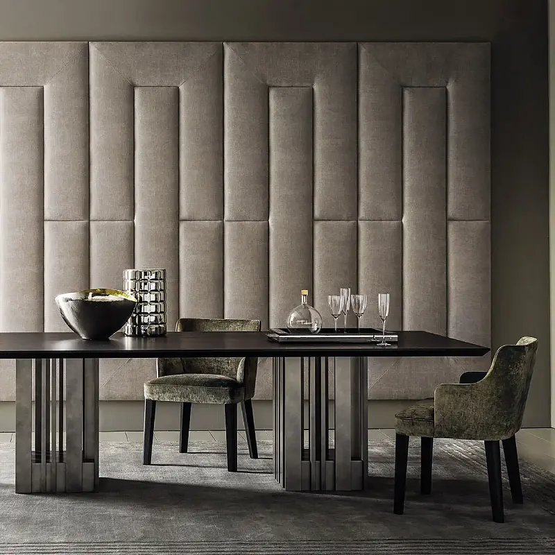 الكراسي مصنوعة من خشب هندسي وخشب زان متين عالي الجودة، مع حشوة إسفنج عالي الجودة ومغطاة بقماش عالي الجودة يوفر راحة مناسبة للجلوس لفترات طويلة.