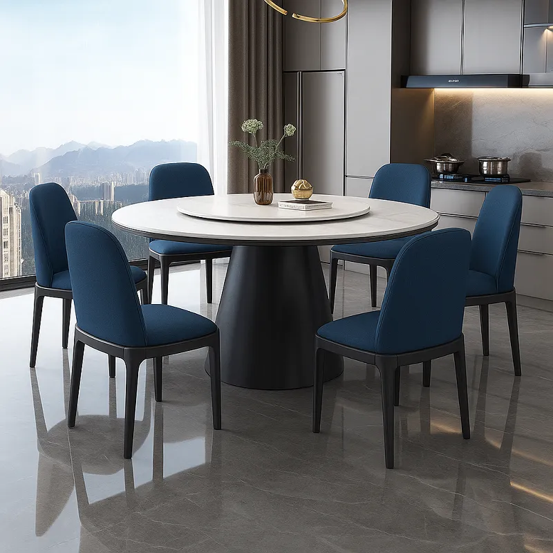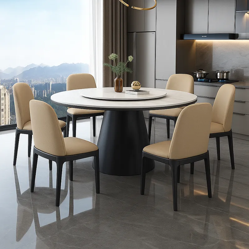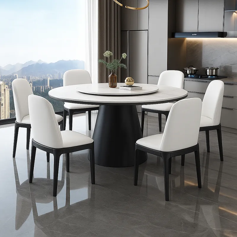 طاولة طعام دائرية رخامية مع كراسي فخمة طاولة طعام دائرية رخامية مع كر...