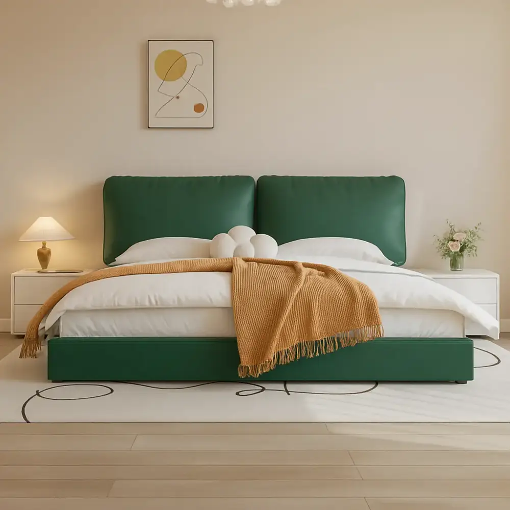 يتميز بتصميم راقٍ يعكس الذوق الحديث، ما يجعله يتناسب بسهولة مع مختلف أنماط الديكور في غرف النوم. يضفي الظهر المبطن بالجلد الفاخر لمسة من الفخامة مع توفير دعم مريح أثناء الجلوس أو القراءة في السرير.