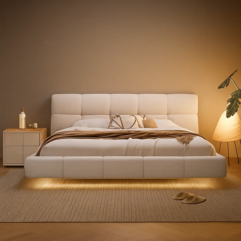 | سرير منخفض مع إضاءة بتصميم عصري وجودة عالية سرير منخفض مع إضاءة بتصميم عصر...