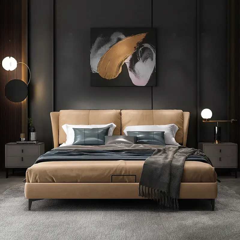 اجعل غرفة نومك أكثر فخامة وأناقة مع هذا السرير المودرن المصمم بعناية ليوفر لك الراحة والجودة معًا. تصميمه العصري المميز يجمع بين الراحة والمتانة، ليمنحك تجربة نوم مثالية تتناسب مع احتياجاتك اليومية وذوقك الراقي.