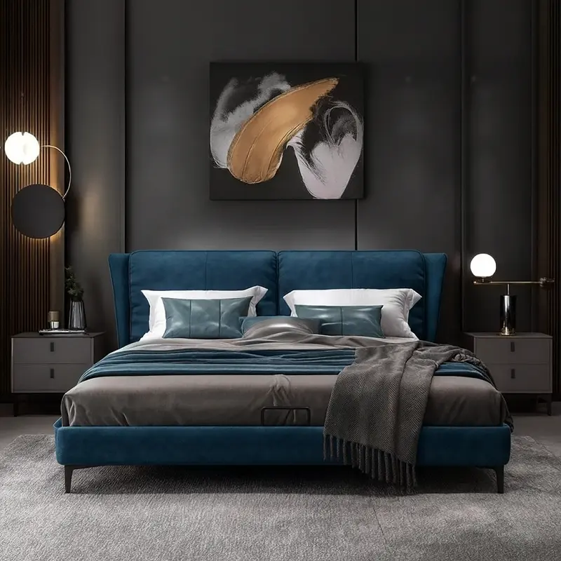 يأتي السرير مغطى بطبقة متكاملة من القماش الفاخر، والذي يتميز بمقاومته للتمزق، ما يجعله خيارًا عمليًا لتحمّل الاستخدام المستمر دون التأثر بعوامل الزمن. ملمس القماش ناعم على البشرة ويمنح السرير مظهرًا راقيًا يزيد من فخامة المكان.