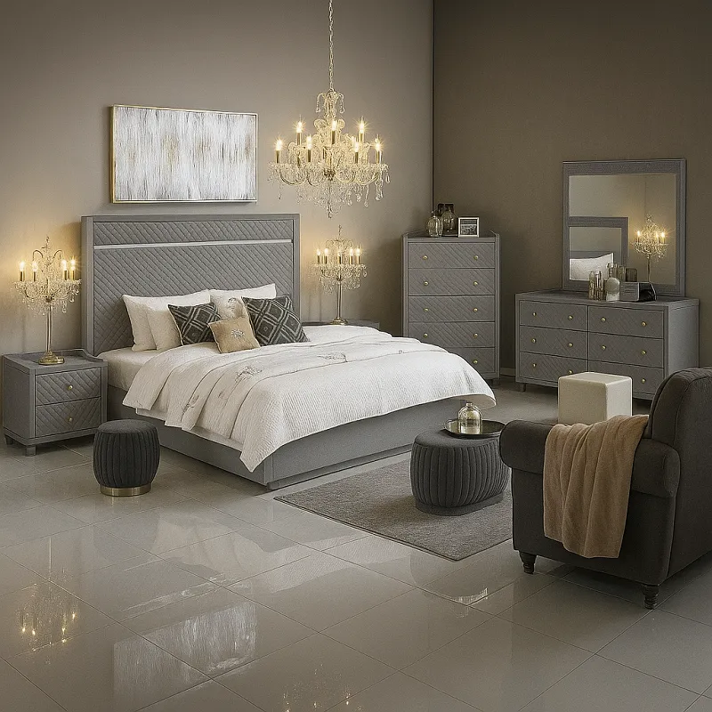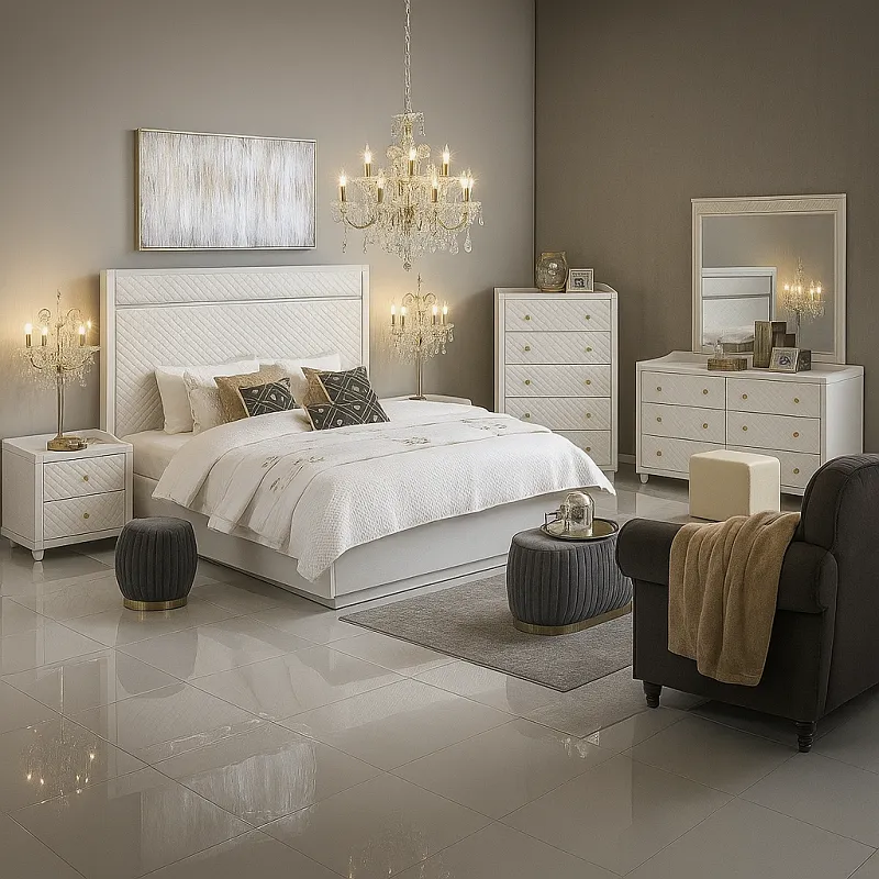 اجعل منزلك يشع بالفخامة والأناقة مع غرفة النوم أمولايت من اركان القصر، حيث يلتقي التصميم الراقي بالجودة الفائقة. احجز الآن لتحصل على تجربة استثنائية لتجهيز منزلك بلمسة فاخرة وفريدة من نوعها.